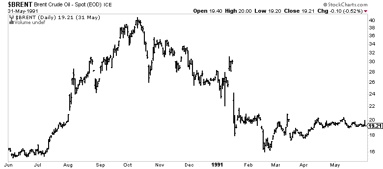 | 1990's Gulf War | $17 -> $40 -> $15 | -20% |