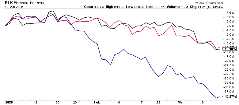 The private credit space continues to flash warning signs. Fund gating — where managers restrict investor redemptions — has spread beyond the initial wave, and the market is pricing it in. BlackRock (BLK) is down 13.18% YTD, but the real pain is in the pure-play alternatives: Blue Owl (OWL) has been cut nearly in half, down 40.27% YTD. That's not a sector rotation — that's the market repricing liquidity risk. The HYG/LQD ratio, which tracks appetite for credit risk, is essentially flat YTD, meaning investors aren't panicking out of high yield broadly — they're surgically punishing the corners of the market where redemption gates and mark-to-market opacity create uncertainty. This is worth watching closely: private credit stress that stays contained is a headwind; private credit stress that spills into broader high yield is a different animal entirely.