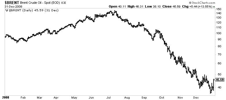 Here's the part most people forget: after peaking at $147 in July, oil collapsed to $32 by December — a 78% crash in five months. Economic activity cratered so fast that oil demand collapsed with it — overwhelming any supply story. When the real economy breaks, commodities follow it down.