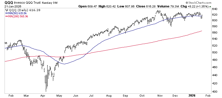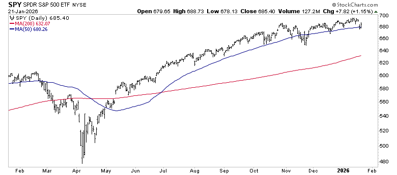 Advanced Analysis: We had a little volatility spike this week with the Japan / Greenland events, yet we still see a resilient momentum trend with a nice bounce-back today. Any pullbacks between current levels and November Low $650 support would be relatively normal, as that would be a ~6% pullback from current levels. Recent minor pullbacks have found support on the Red 50SMA line, indicating a strong trend.